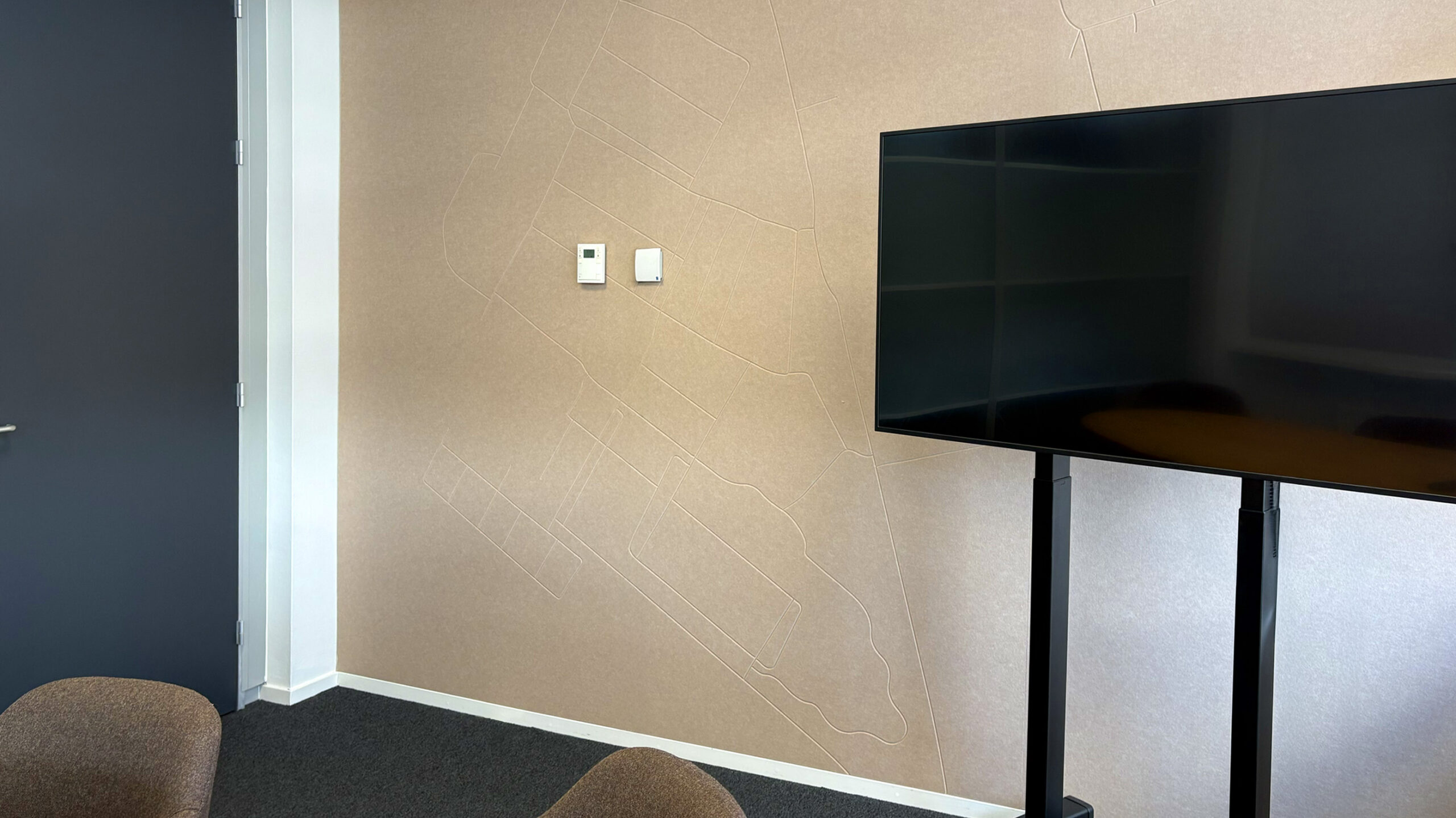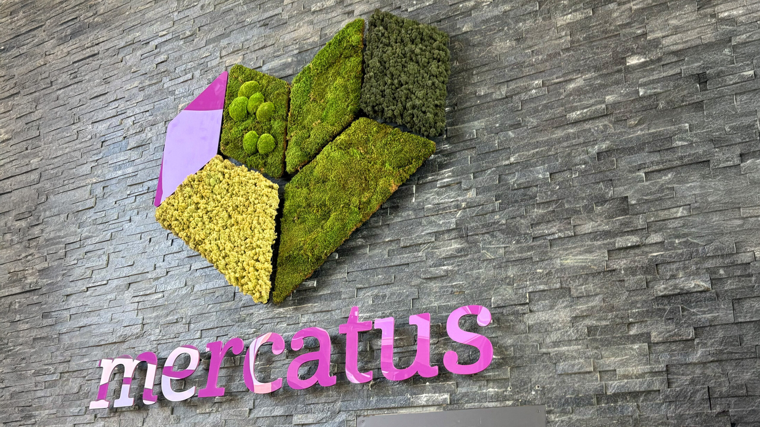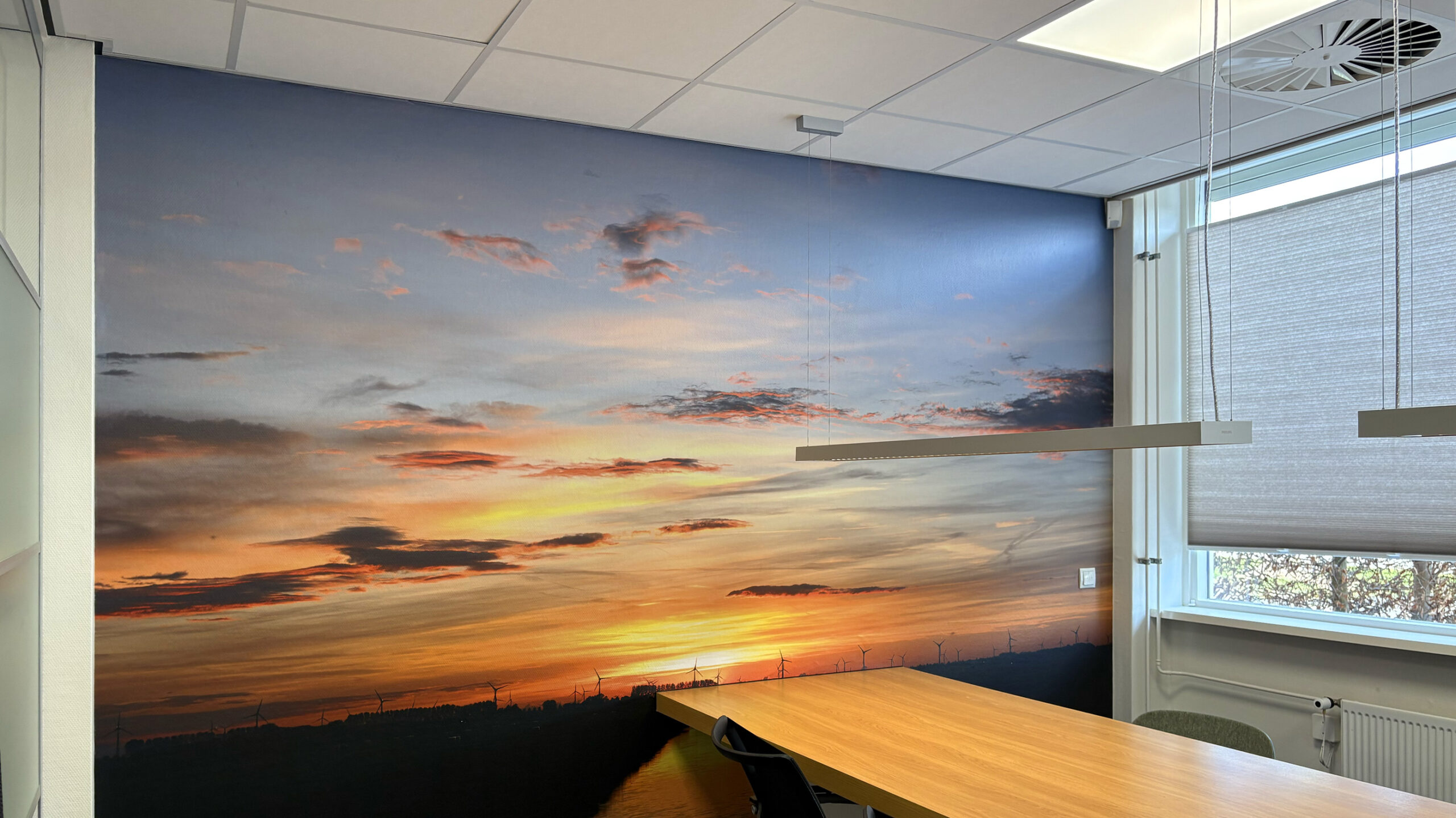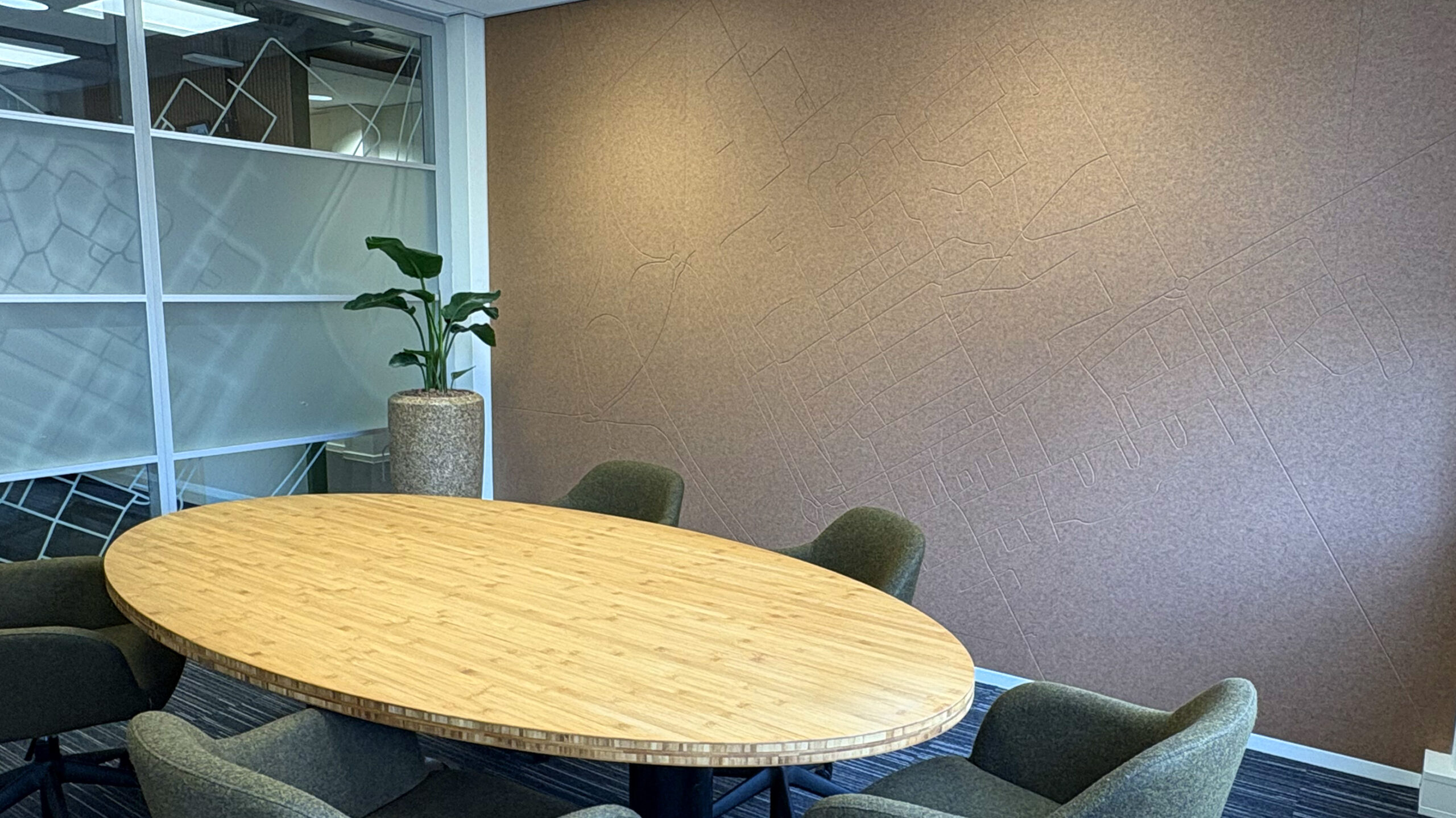 Voor Mercatus Wonen mochten we bijdragen aan een prachtige restyling van het interieur: meer groen, meer duurzaam, meer polder. Elk kantoor kreeg een eigen identiteit, vernoemd naar een plaats in de polder. Deze namen hebben we op een creatieve manier doorvertaald op de muren en ramen. Met duurzame PET-vilt panelen waarin de contouren van de plaatsen zijn uitgefreesd, bijpassende raamstickers, fotowanden en een volledig gewrapte keuken vormt alles één geheel. Het Mercatus-logo hebben we uitgevoerd in acrylox, gecombineerd met echt mos voor een natuurlijke uitstraling. En dankzij one-way vision op de ramen blijft het zicht naar buiten behouden. Een project waar beleving, duurzaamheid en identiteit perfect samenkomen.